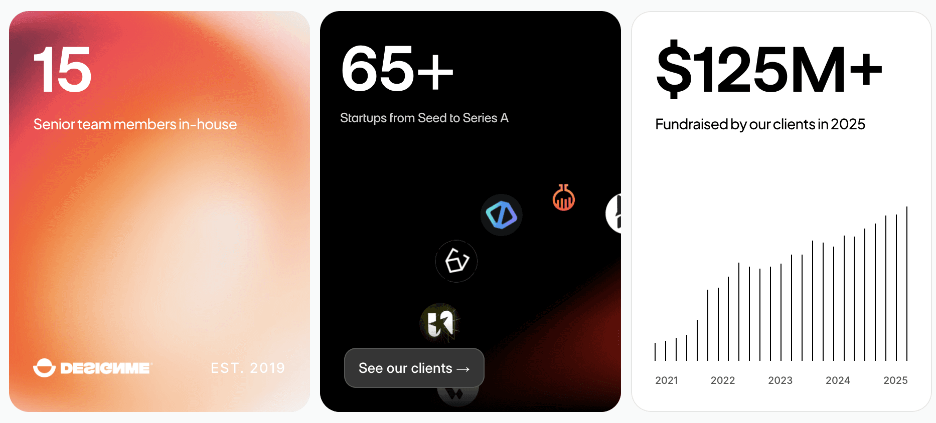 DM Studio (formerly DesignMe) is a design agency specialising in performance-driven design for startups and enterprise clients, with a focus on Seed - Series A startups. Led by CEO and Creative Director Adrian Kuleszo, the studio has educated 700,000+ creatives through its methodologies. Adrian has published 4 books on product design and UX systems, selling 80,000+ copies to designers at Fortune 500 companies including Intel, Toptal, Nestle, and Porsche.